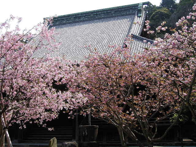 本覚寺のヤエザクラが満開.安養院のツツジはまだ。