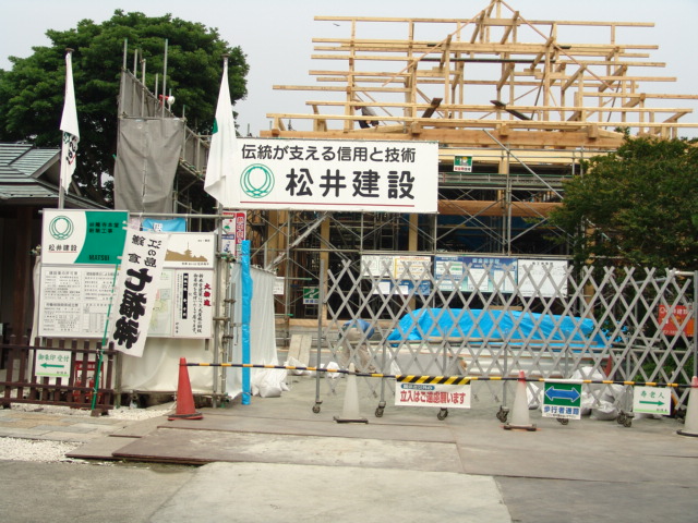 毎年、フヨウがたくさん咲く妙隆寺は、本堂の新築工事のため撮影できません(写真右)。刈ってしまいました。サルスベリはありますが、撮影は無理かと思います。(工事期間18年2月末日まで)