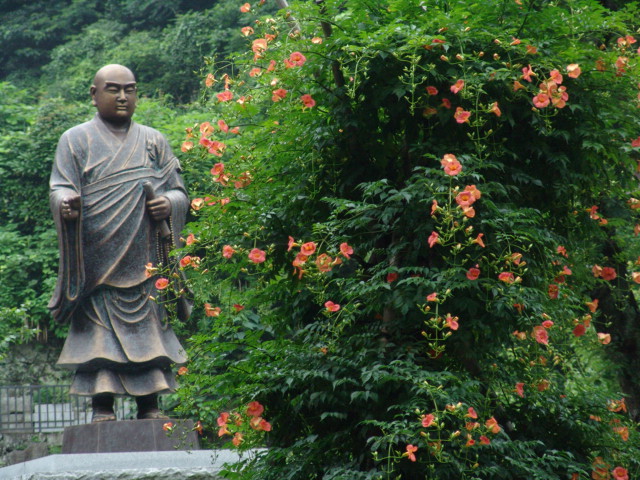 今まであまりたくさん花が着いていなかったノウゼンカズラでしたが、きょうは海蔵寺(左)も妙本寺(右)もたくさんの花をつけています。風があまり吹かなかったのと暑い日が続いたためかと思います。