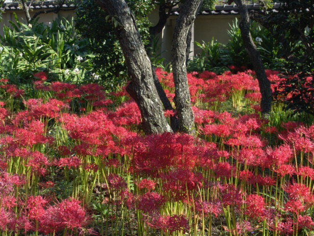 英勝寺のヒガンバナは盛りを過ぎていました(右)。先週の半ばあたりが良かったのかと思います。
