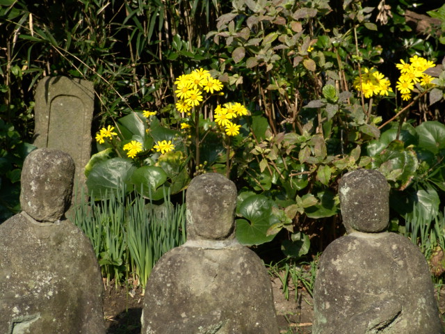 境内も、門前もツワブキの黄色い花で埋め尽くされています。残念ながら境内では三脚一脚使用禁止です。