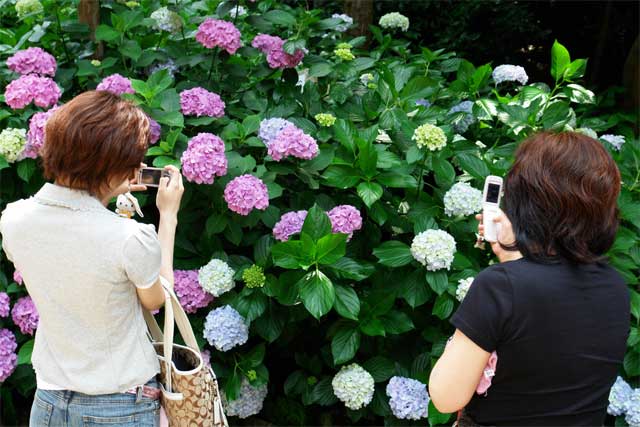 円覚寺は意外と多くのアジサイがあります。境内が広いので混雑もあまり気になりません。明月院通りは長い行列ができていました。(写真は円覚寺にて)