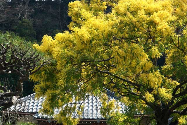 材木座の九品寺にはボケ、ハクモクレンが満開です。来迎寺のミモザも満開になりました。