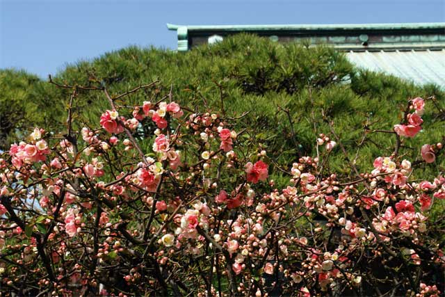 つい最近、今年の最低温度を記録したと思ったら、今日はとてもあつく春から夏にかけての気温でした。ウメはほとんど散りましたが、鎌倉駅近くの大巧寺(おめんさま)にはボケ、カンヒザクラ、ヒマラヤユキノシタなど意外と多くの花が咲いていました。