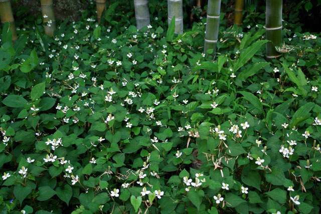 既に満開の時期は少し過ぎています。竹やぶにはドクダミが群生していました。