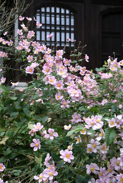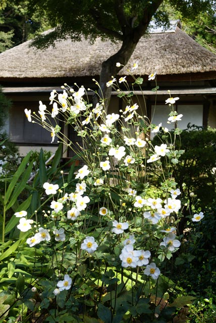 瑞泉寺はあまり花が咲いていませんが、シュウメイギクが咲いています(右)。