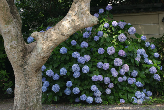 もうアジサイの盛りが過ぎていますが、意外とあちこちに名残のアジサイが咲いていました。左/英勝寺、右/浄光明寺のカシワバアジサイ。