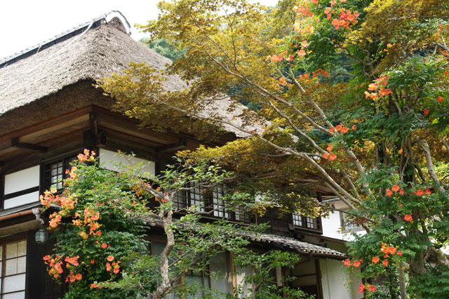 谷戸の奥にある海蔵寺にはノウゼンカズラ、キキョウ等咲いています。