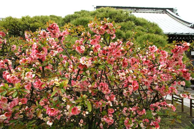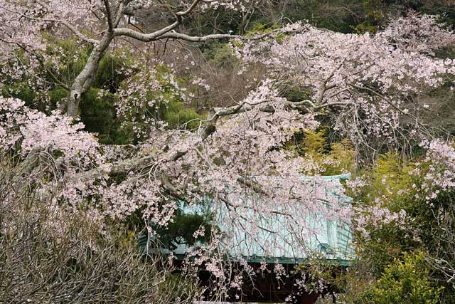 それでも春です。鎌倉駅の近くの本覚寺のシダレザクラは満開です(写真上)。長谷にある光則寺のシダレザクラも満開です(写真中)。また、材木座の九品寺のボケもはぼ満開です(写真下)。それぞれ見頃です。