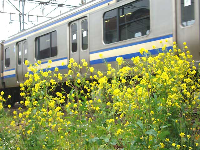 写真左、段葛のサクラ。写真右、横須賀線沿線のナノハナ。