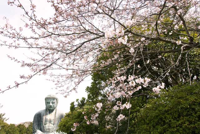 高徳院大仏のサクラは、もう少しで満開です(写真上)。