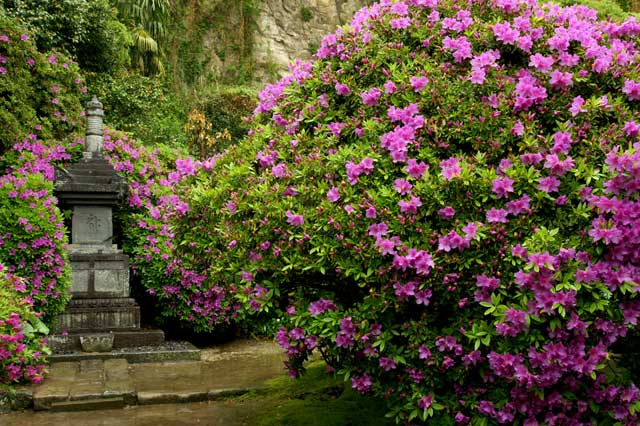 きょうも暖かいです。北鎌倉の建長寺にはヤエザクラ(左)や、例年五月の連休に咲くボタンがすでに咲いていました(右)。シャクナゲはまだ蕾です。