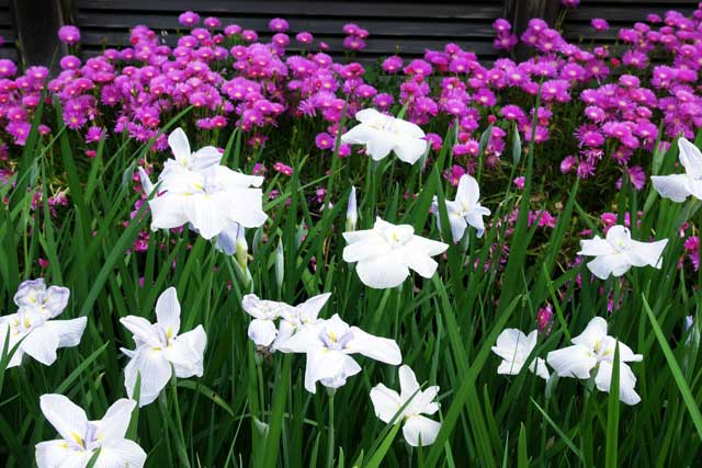 海蔵寺にはハナショウブ、マツバギクが咲きだしています。今年はやや早いですが満開はもう少し(中)。