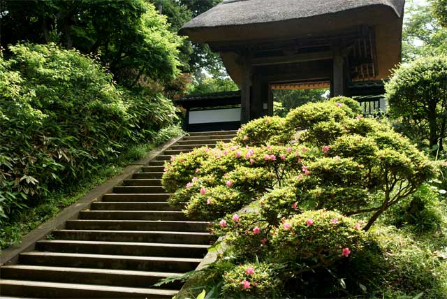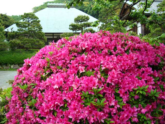 円覚寺帰源院前のサツキがちらほら咲きだしてきました(右)。満開はまだまだ。