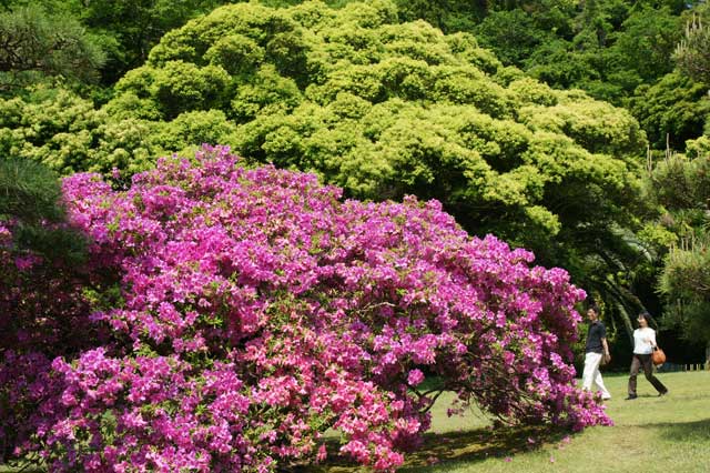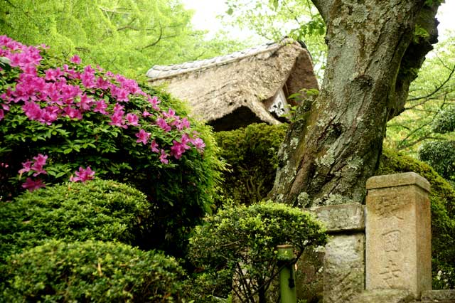 光明寺の石庭、サツキが見頃です。