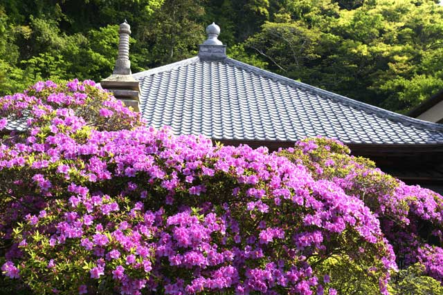 安養院のツツジ、境内は盛りを過ぎましたが、門前のオオムラサキツツジが満開になっています。