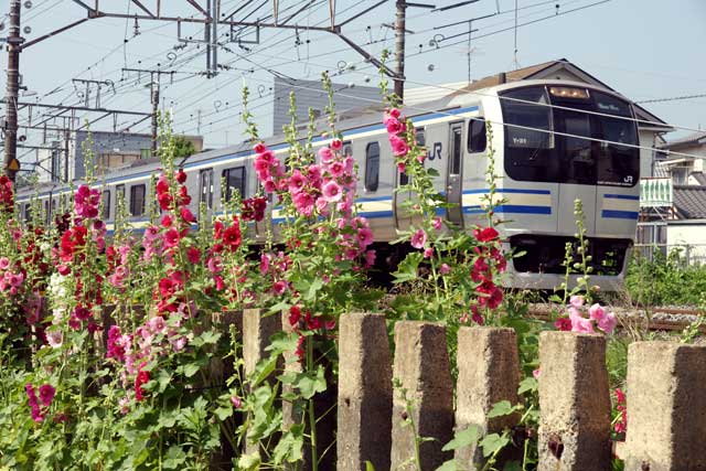 横須賀沿線、鎌倉駅の近くに今年もタチアオイが咲きだしています(上)。