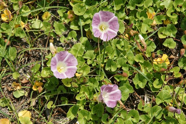 七里ガ浜のハマヒルガオ、わずかに咲いています。