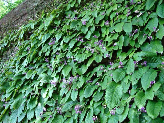 同じ境内の天源院近くの石垣にはたくさんのイワタバコが咲いています(下)。