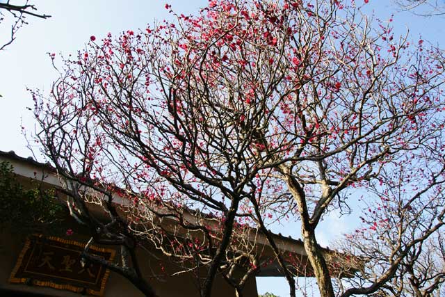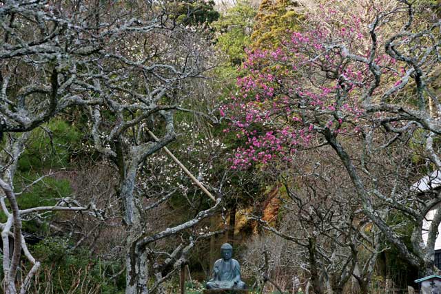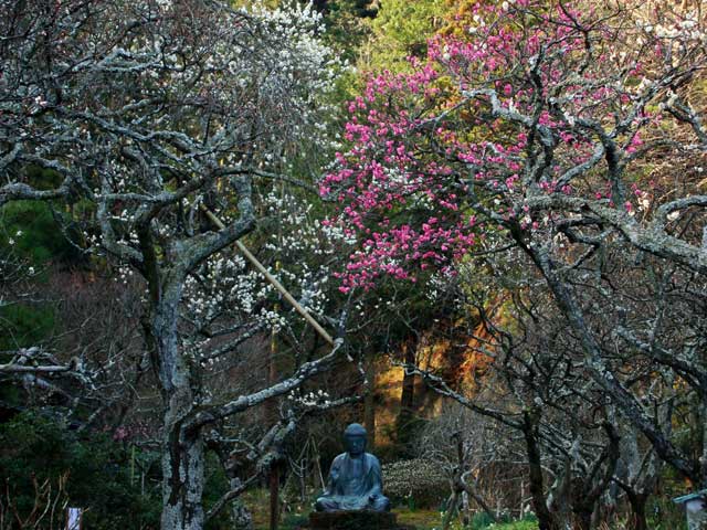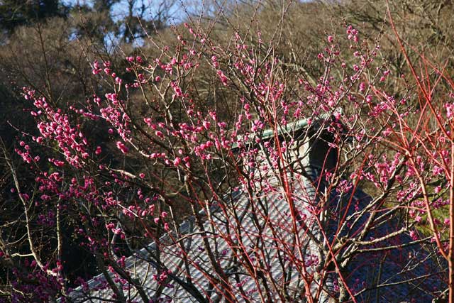 宝戒寺はほとんどウメは咲いていません。お寺の人の話では、今年はすでにシダレウメの蕾が大きくなっており、早く咲くのではないかと言っていました(写真左)。