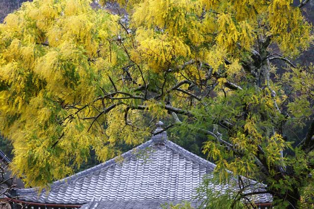 材木座の来迎寺、例年3月下旬に咲くミモザがだいぶ咲いてきました。満開までもう少しです。(写真下)