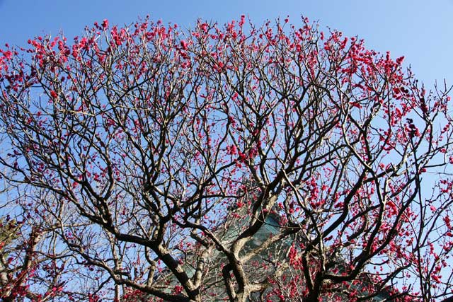 学問の神様、荏柄天神社のウメは紅白が咲き、紅梅はやや盛りが過ぎましたが今が一番の見頃かと思います(写真左)。