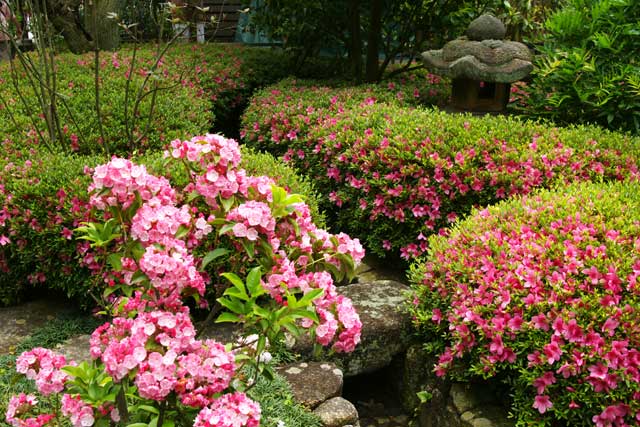 材木座の光明寺石庭のサツキ、周りの雑草が刈られ綺麗になりました。
