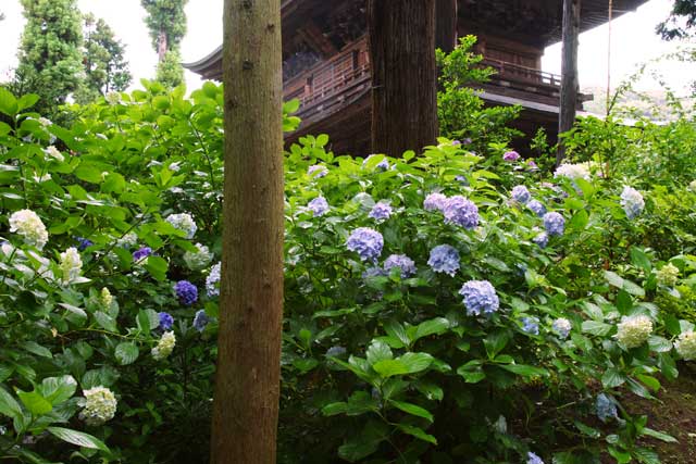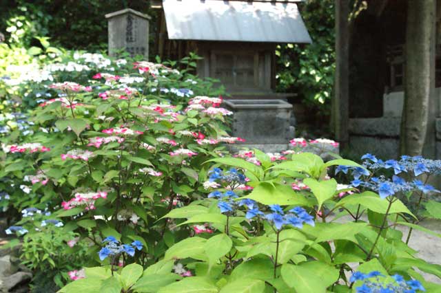 広い境内のあちこちにアジサイが咲いていました。まだ、色が薄いのがありますがほぼ見頃です。