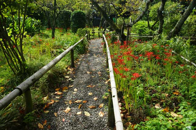 ヒガンバナもう少し。宝戒寺のハギ見ごろ。