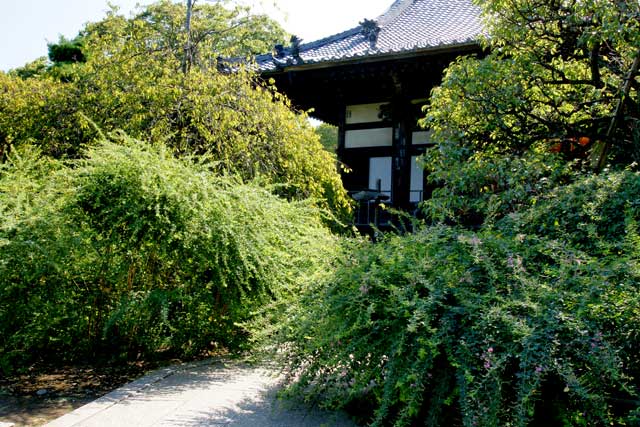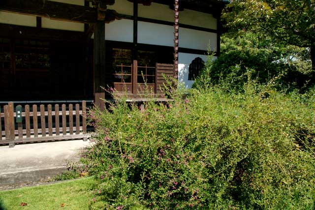 海蔵寺山門のハギが咲いてきました。花はあまり多くありません。