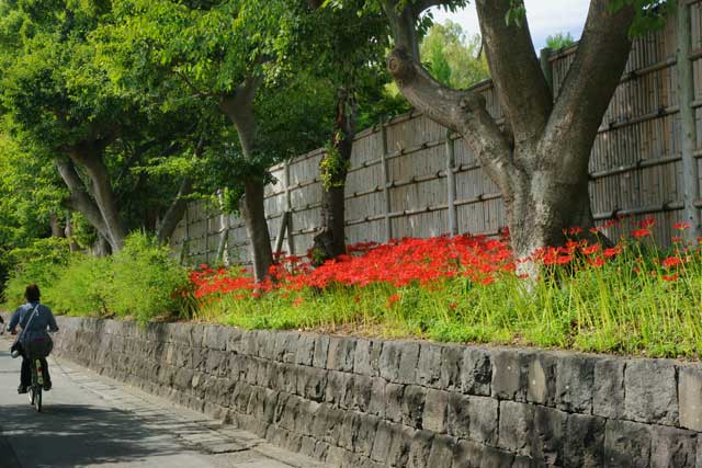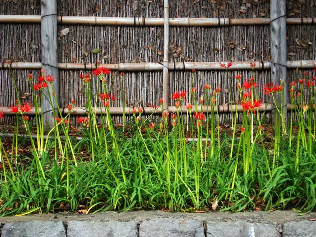 鶴岡八幡宮の東側通路のヒガンバナもほぼ満開です。(写真下2枚)