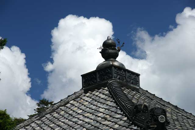 北鎌倉の浄智寺、夏から秋に移行するときであまり見るものがありません。真夏の雲が湧いていました。