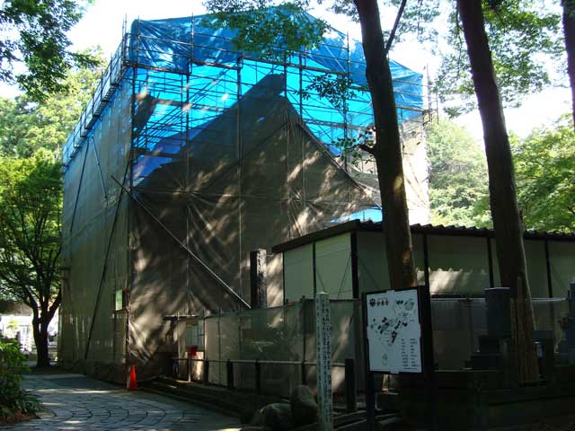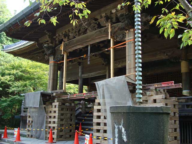比企谷の妙本寺。二天門も祖師堂もともに保存修理のための工事中。