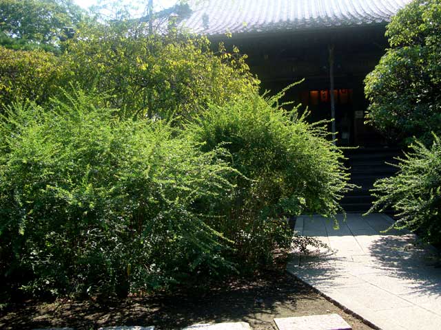山門前のハギは葉が茂ってきていますが花は一つも付いていません。