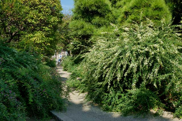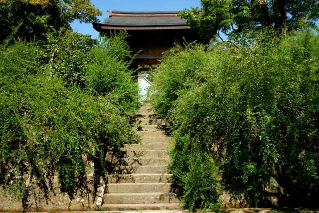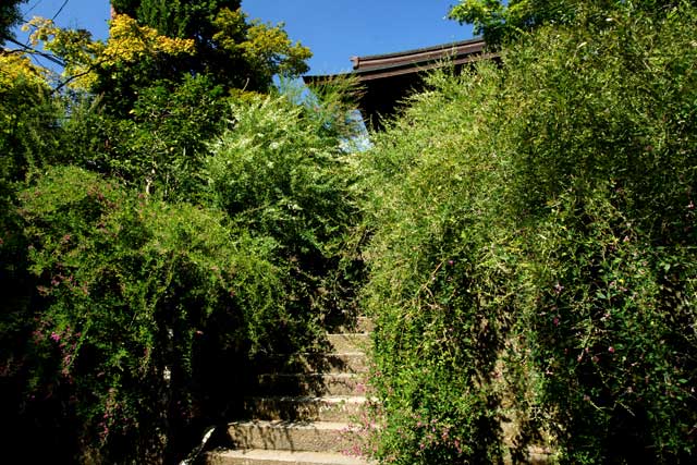 山門の周りは茂っていますが花はあまり付いていません。