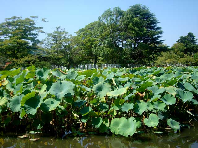 池には、花は散ってしまっていますがハスの葉でいっぱいです。
