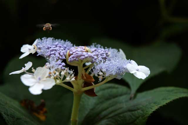 あまりの暑さに草木も元気がないように見えます。タマアジサイが暑さを和らげてくれています。