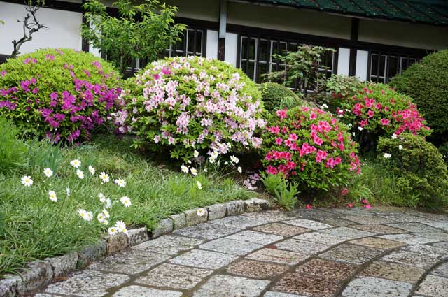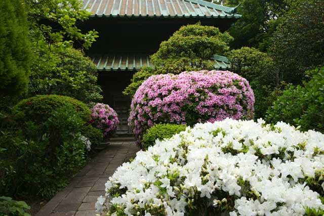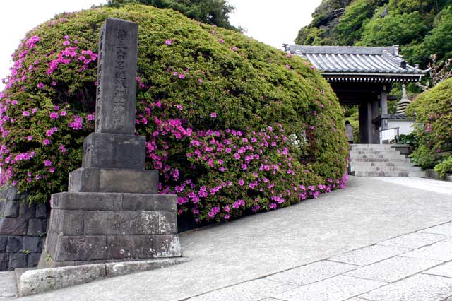 材木座の光明寺。三尊五祖石庭のサツキが咲き出してきました。