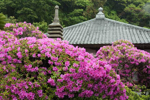安養院門前のオオムラサキツツジが満開になっています。