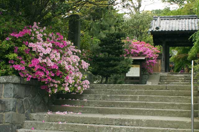 大町の安養院、境内のツツジがだいぶ咲いてきました。門前のオオムラサキツツジはもう少しです。