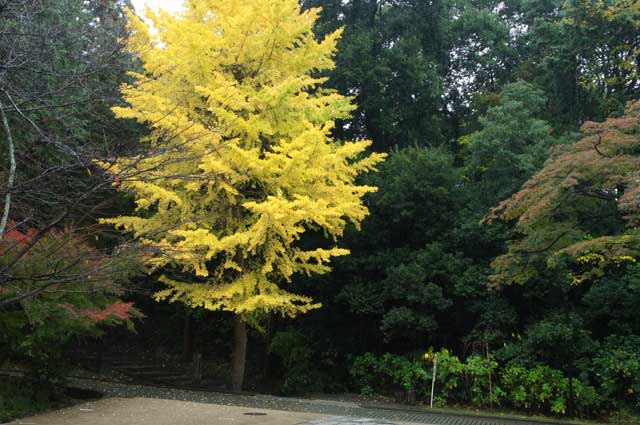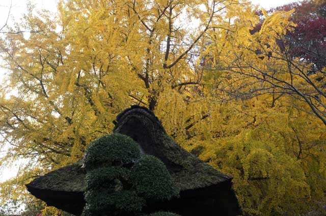 近くの杉本寺はイチョウの傷みが激しく、黄葉,紅葉は良くありません(写真下)。