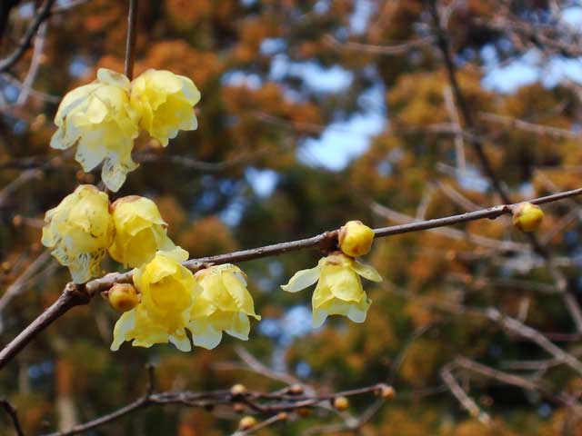 浄智寺はロウバイが見頃になっていますが花数は少ないです。(写真下2枚)