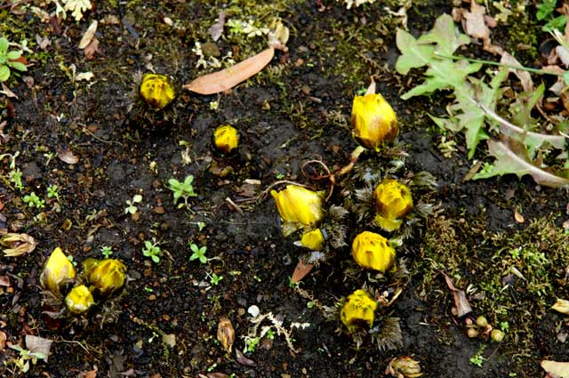 宝戒寺、大巧寺、やっと出て来た福寿草。