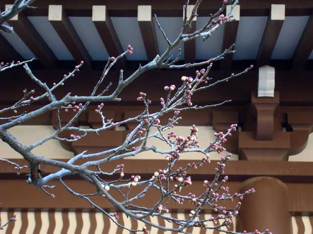 荏柄天神社の針供養。ウメの満開はまだ。