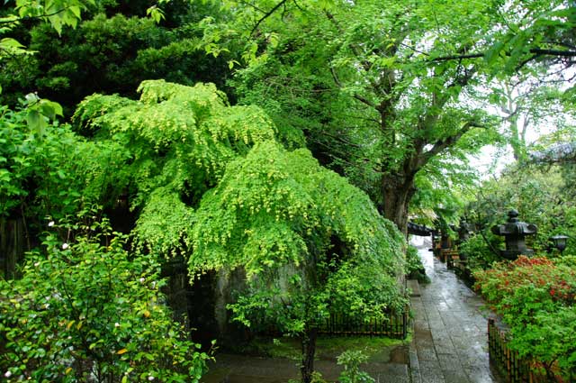 長谷の光則寺、雨上がりの境内が光っています。