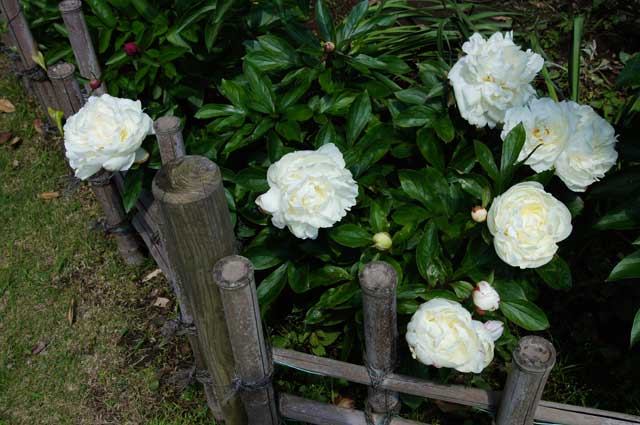 鎌倉文学館のバラが満開です。庭園の隅にはシャクヤクも咲いています。