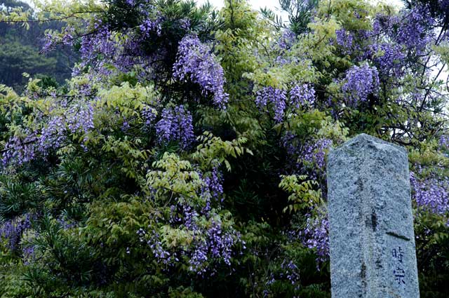安養院のオオムラサキツツジはまだ蕾(写真左)。別願寺のフジは見頃です(写真右)。