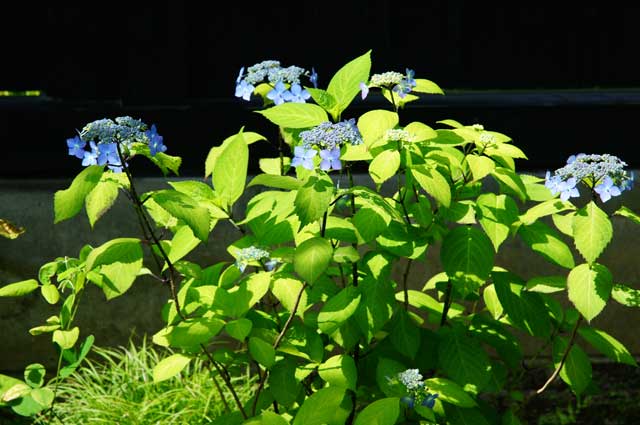 ガクアジサイが少し咲いています。