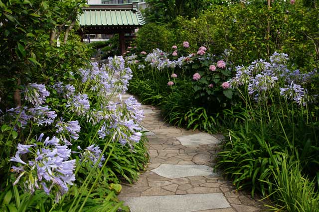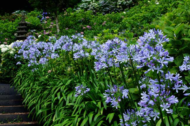 アジサイ散策路にはアガパンサスが満開になっていました。
