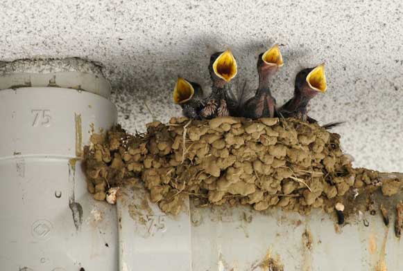 ツバメの子は暑さに負けず元気です。